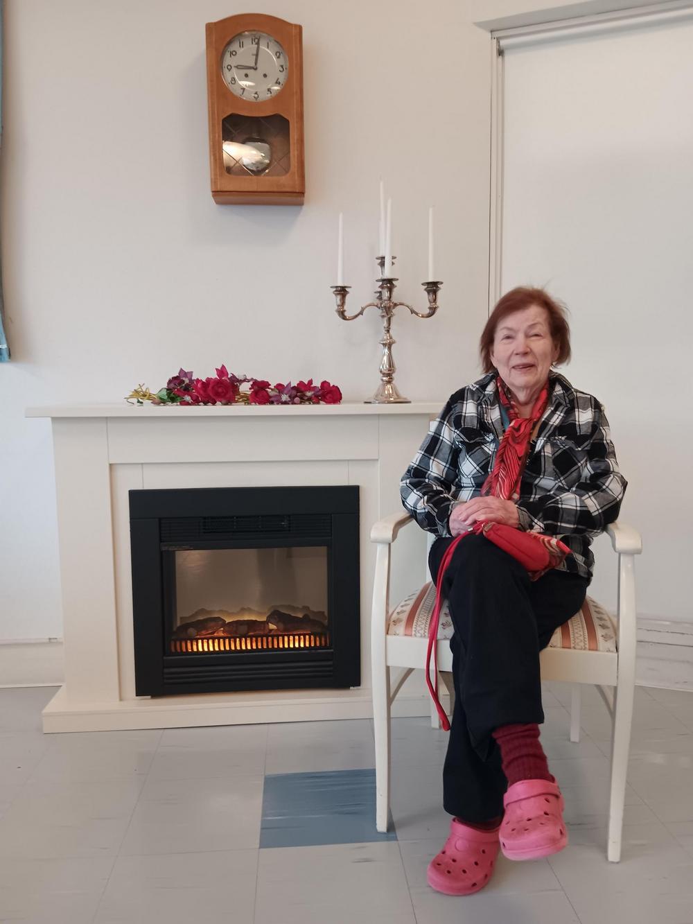 Ruokasaliin tuodun takan äärellä kelpaa poseerata!