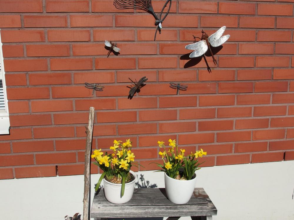 Kevät etenee, vaikka ilmat ovatkin vappuiset koleat. Auringon paistaessa etupihalla onneksi on jo niin lämmintä, että ulkona on mukava istuskella.