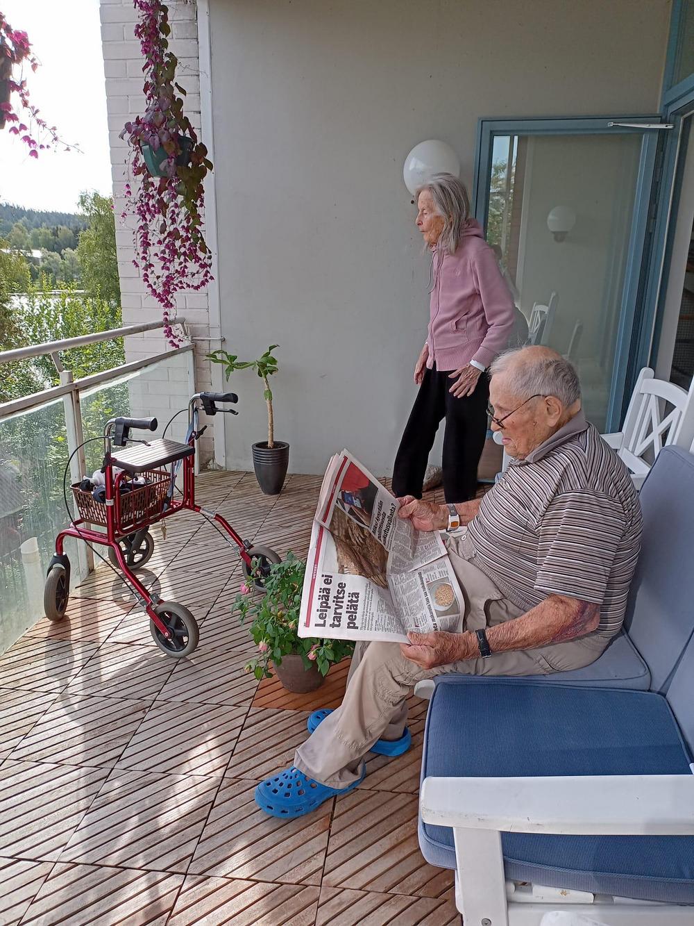 Elokuun kauniit ja lämpöiset ilmat ovat houkutelleet ulkoilemaan. Osa asukkaista nauttii mieluiten maisemista järven puolen terasseilla ja parvekkeilla, toiset lenkkeilevät ahkerasti Ipunan pihan polulla. Ulkona päiväkahvitkin maistuvat paremmalta. Ilonpisarasta löytyy ulkoilumahdollisuuksia moneen makuun ja hoitajat auttavat tarvittaessa myös pyörätuolilla ulos.