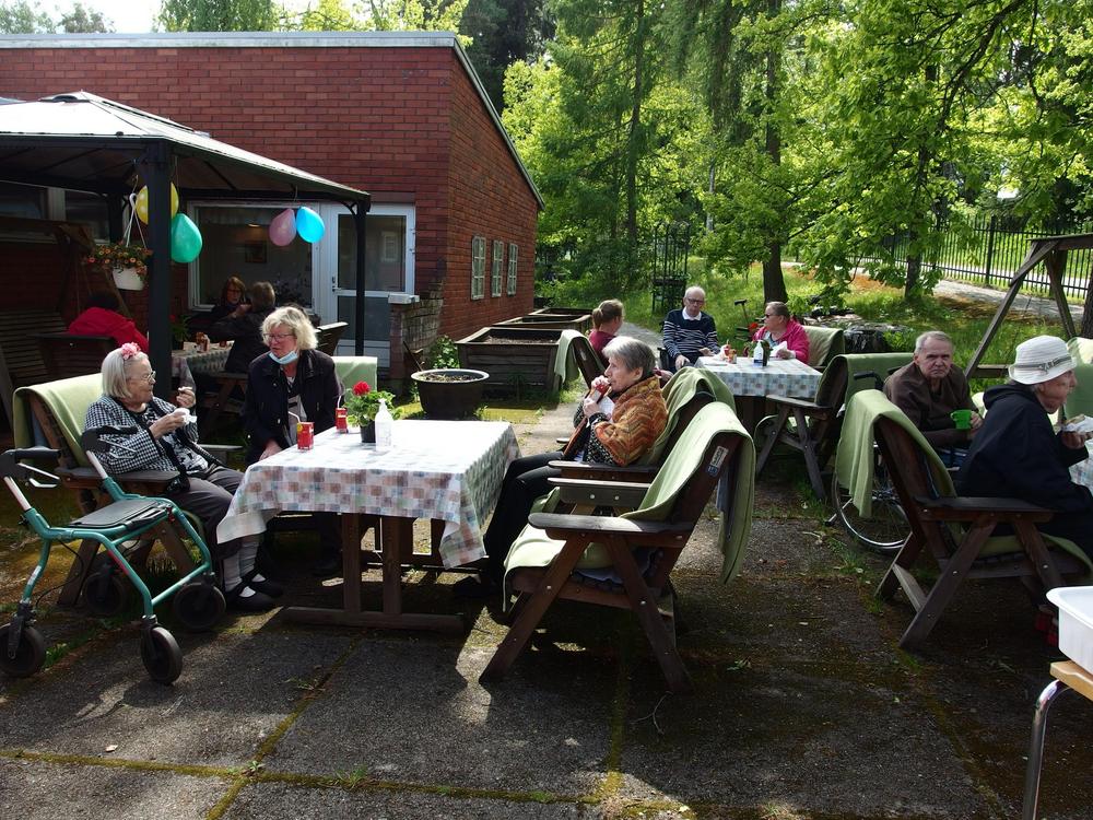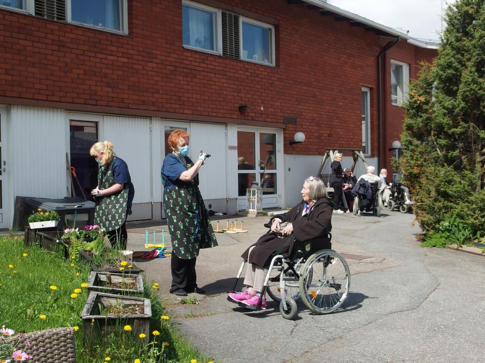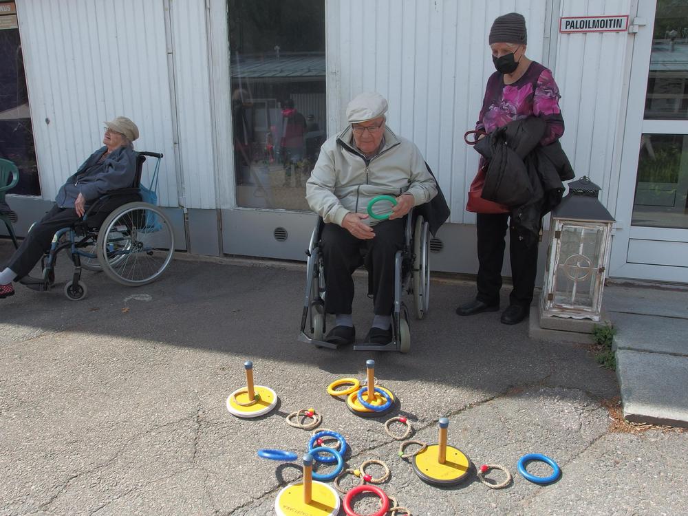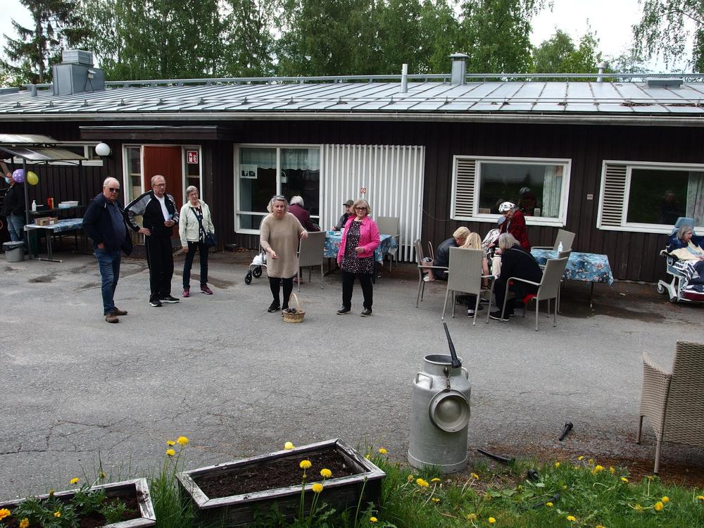 Tänään vietettiin yhteistä iltapäivää asukkaiden, omaisten, hallituksen ja henkilökunnan kesken hienossa kesäsäässä. Vielä eilen ulkona pidettävien kesäisten juhlien pitäminen vaikutti hieman riskialttiilta, mutta kun päivään varaudutiin isolla kasalla sadeviittoja, niin sitten saatiinkiin nauttia koko iltapäivä auringon lämmöstä!