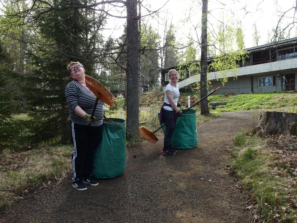 Tällä viikolla kevät on edistynyt kovaa vauhtia. Ilonpisarassa oltiin kevättouhuissa mukana ja keskiviikkona pidettiin haravointitalkoita ja aikamoinen lavallinen päivän aikana saatiinkin kokoon.