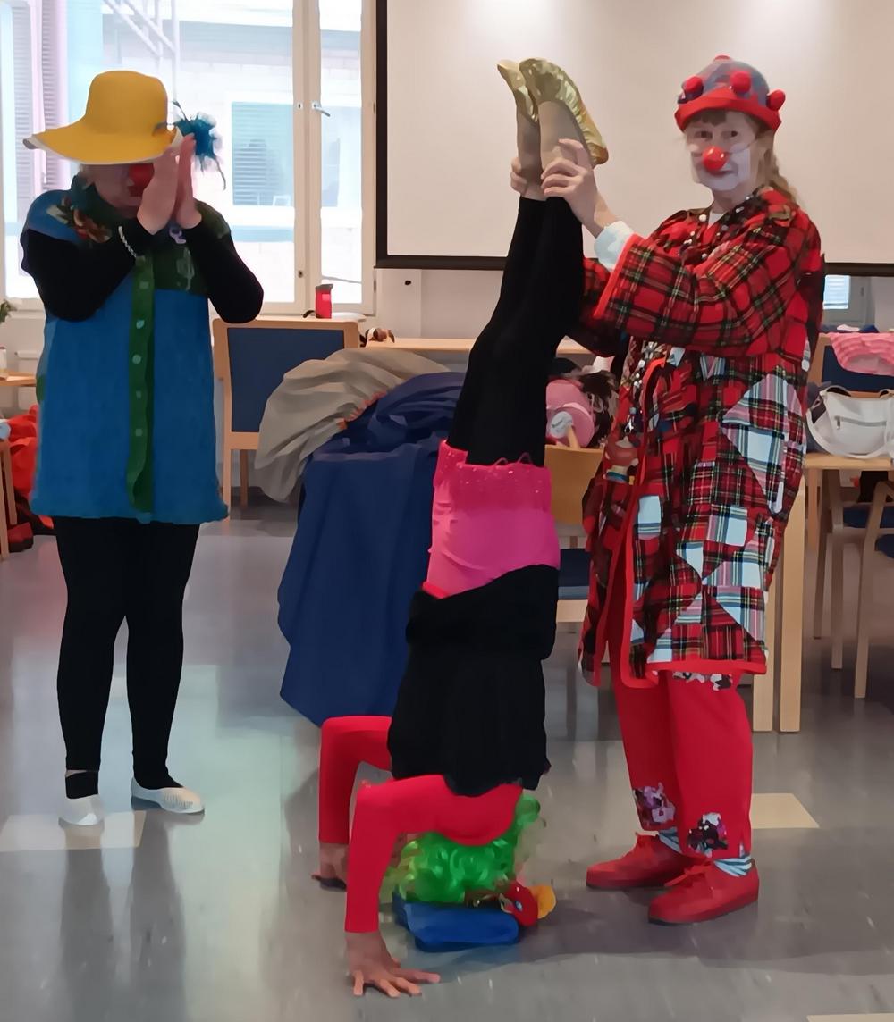 Lisäksi olemme nauttineet Setlementtiliiton Yhdessä mukana -projektissa koulutettujen senioriklovnien iloisesta vierailusta. Meno oli vauhdikasta ja mukaansa tempaavaa!