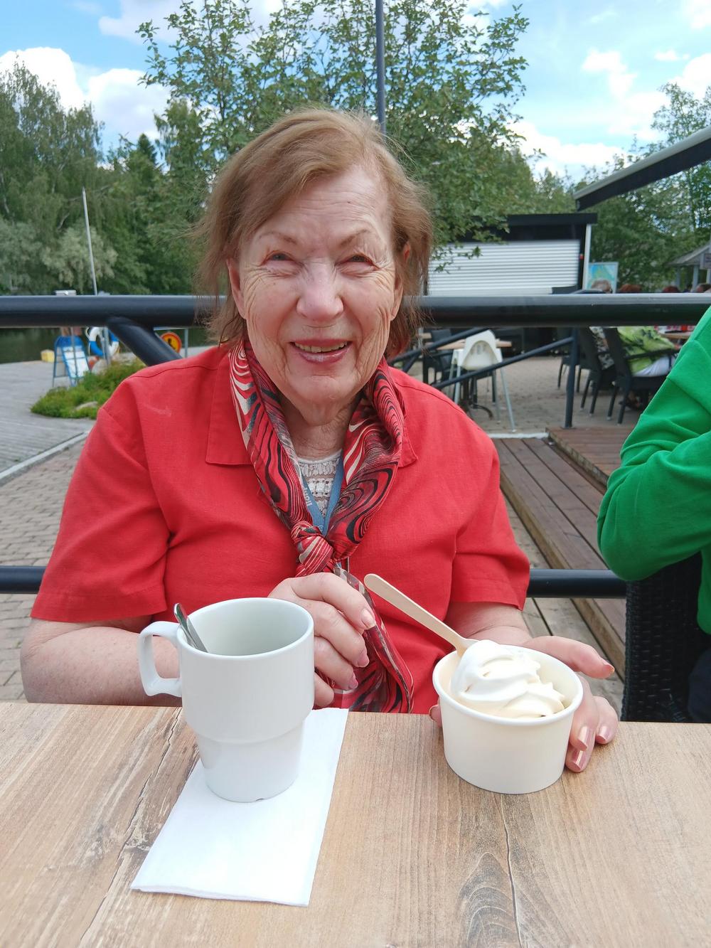 Pieni porukka Ilonpisaralaisia pokkesi ohjaaja Pirjon kanssa Mierolan siltakahvilassa virkistäytymässä. Matka tehtiin Ilonpisaran autolla ja kuljettajana toimi talonmies Ilpo. Oli mukavaa!