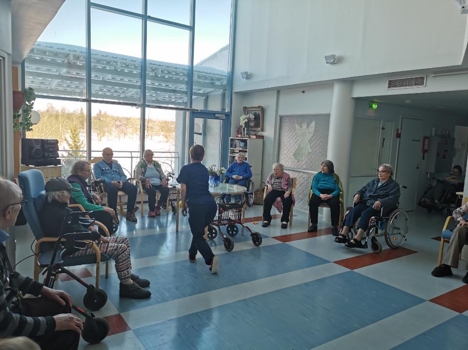 Nyt kun rokotteita on jo kierros saatu niin hieman isompikin ryhmä voi pelata ja pitää yhdessä hauskaa. Hoivakodissa on ystäviä ja juttukavereita.