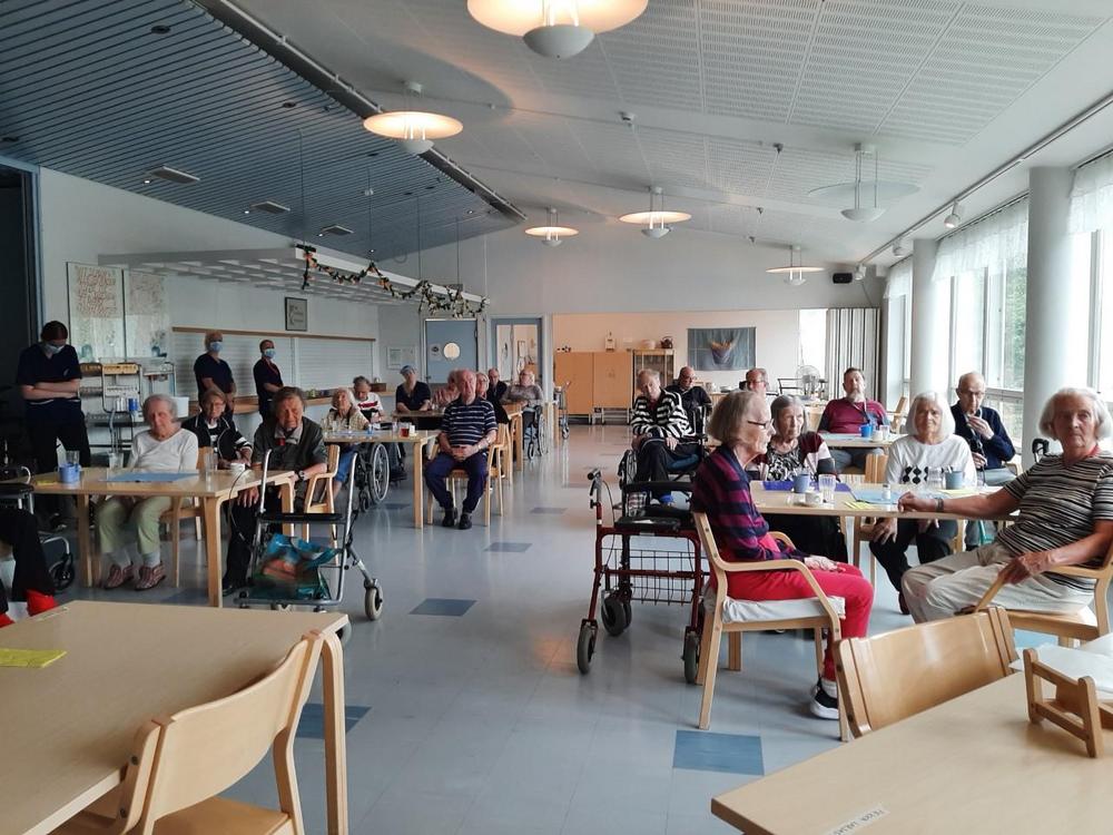 Tänään päiväkahvin yhteydessä saimme nauttia esityksestä, jonka meille tarjoili ansioitunut jazzmuusikko ja säveltäjä Esa Pethman yhdessä Eila vaimon kanssa. Eila Lausui koskettavia sanoja ajatelmien helminauhana Esan soittaessa taidokkaasti huilua.