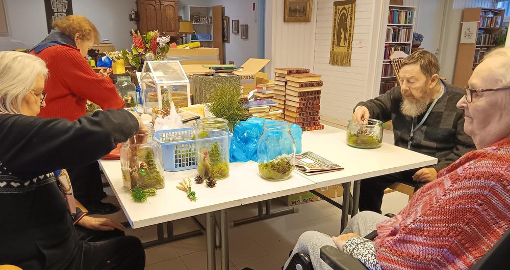 Joulua on valmisteltu esimerkiksi tekemällä jouluisia asetelmia lasipurkkeihin ja leipomalla joulutorttuja.